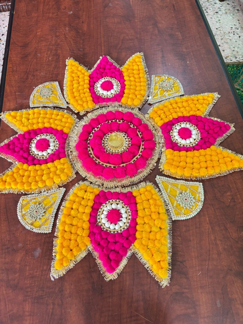 SKU:RNG-MULTI-FLR-1PC-013 Category:Festive Décor Tag:#FloralRangoli #MulticolourFlowerDecor #IndianFloralArt #ReusableRangoli #VibrantHomeDecor